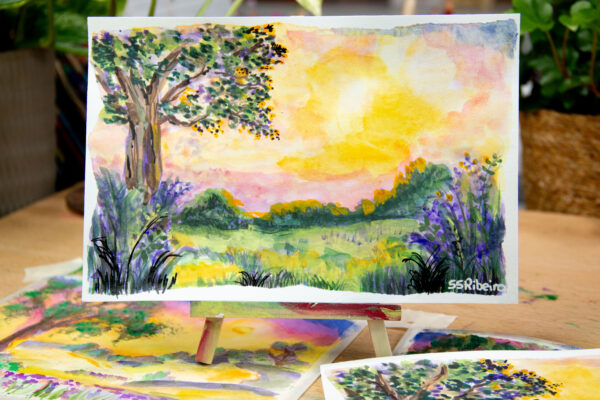 Watercolor and Gouache Painting on wood pulp, cold-press Watercolor Paper, 189GSM.